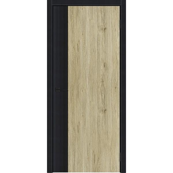 модель № 523 выполнена в покрытии ПВХ двух ярких цветов; имитация натурального дуба + матовый блэк, алюминиевая кромка черного контрастного оттенка.